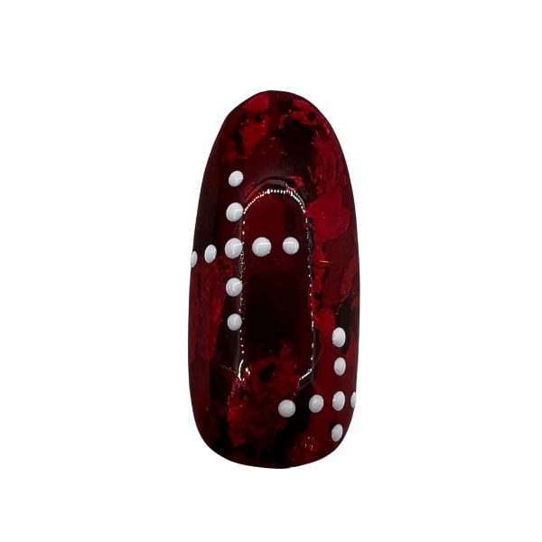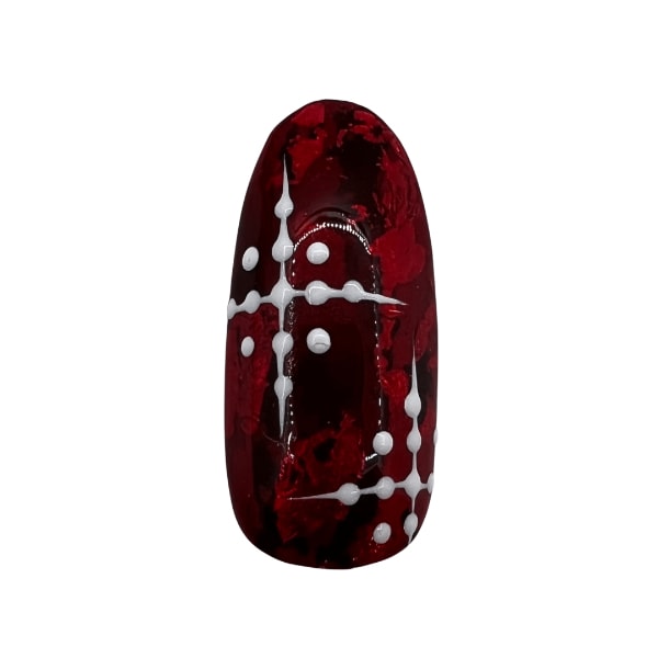 Use a dotting tool, apply white gel polish dots on the nail in cross patterns. I used Lecenté Create Gel Polish in White Magic.