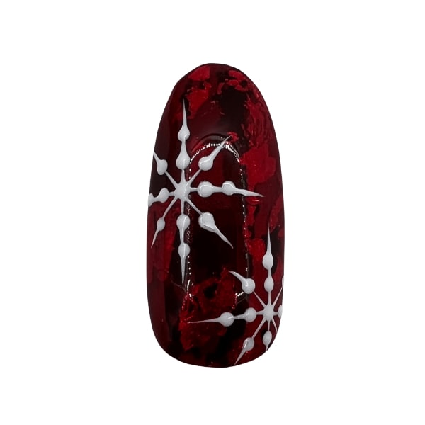 Connect the dots to the centre of the shapes with the striping brush to complete the snowflakes, and cure.