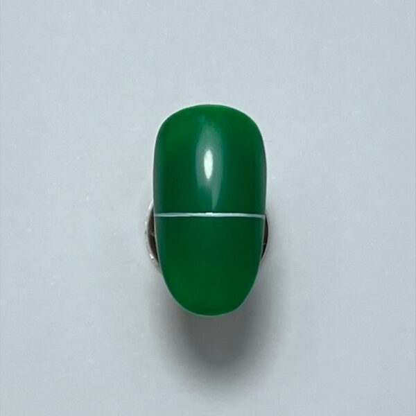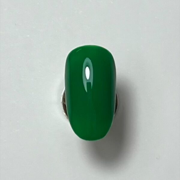 Prep the nail and apply two coats of green gel polish, curing after each application.
