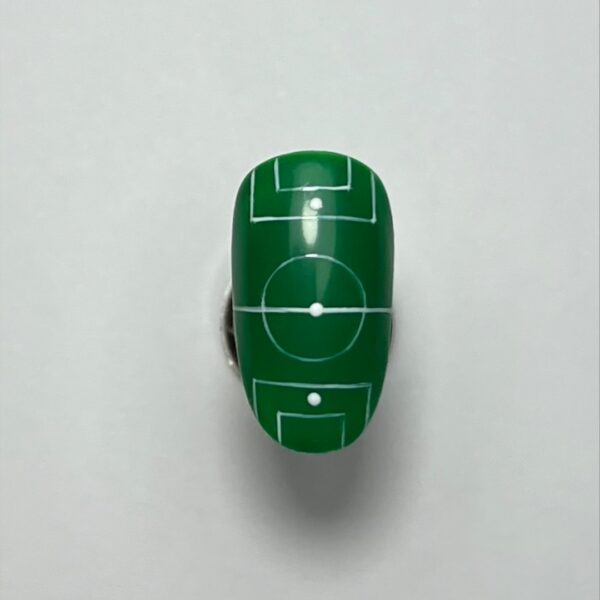 Here, she shares how to paint a salon-friendly football pitch style on a nail.