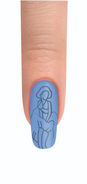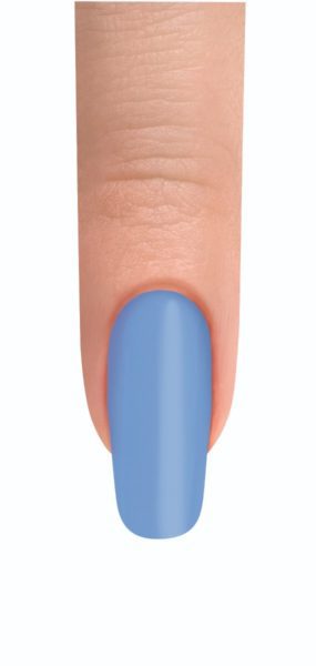 After completing your Gelish nail prep, apply a thin coat of Blue-Eyed Beauty making sure to cap the free edge. Cure for 30 seconds in the 18G LED Light. Repeat for full coverage.