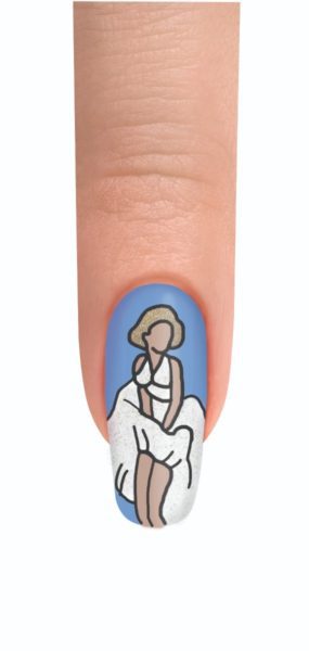Using a Mini Striper Brush and Black Shadow, paint a light outline of Marilyn Monroe in a dress. Cure for 30 seconds.