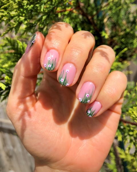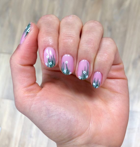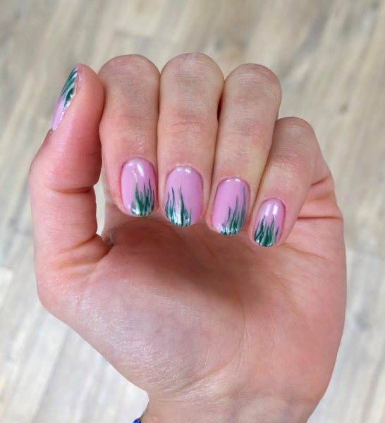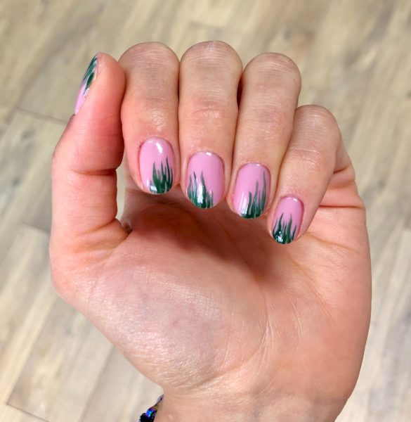 Using a nail art brush dipped in GELLUX Rush Hour, paint some grass blades on each nail then cure.