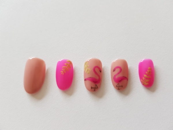 Salon System nail expert, Karen Louise, creates a fun summery look featuring pink flamingos using Gellux gel polishes, available from wholesalers nationwide.