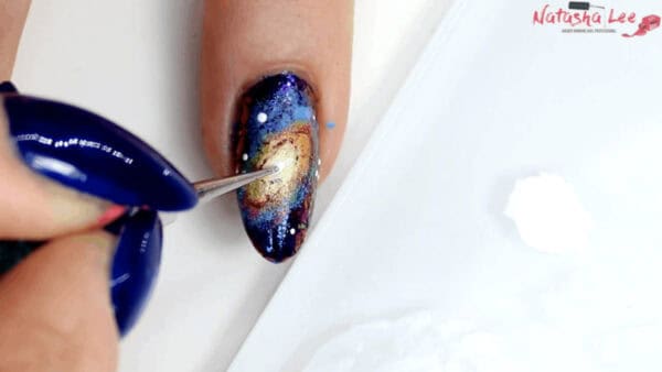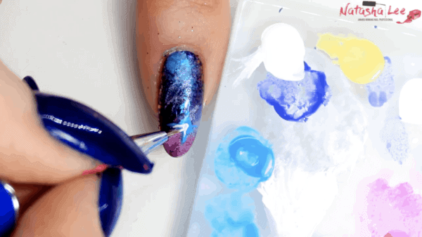 Try recreating this ultimate galaxy nail design by Natasha Lee!