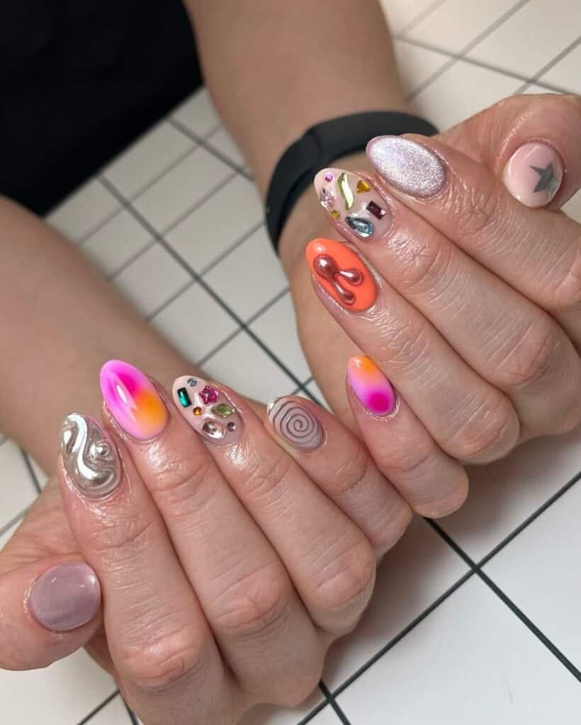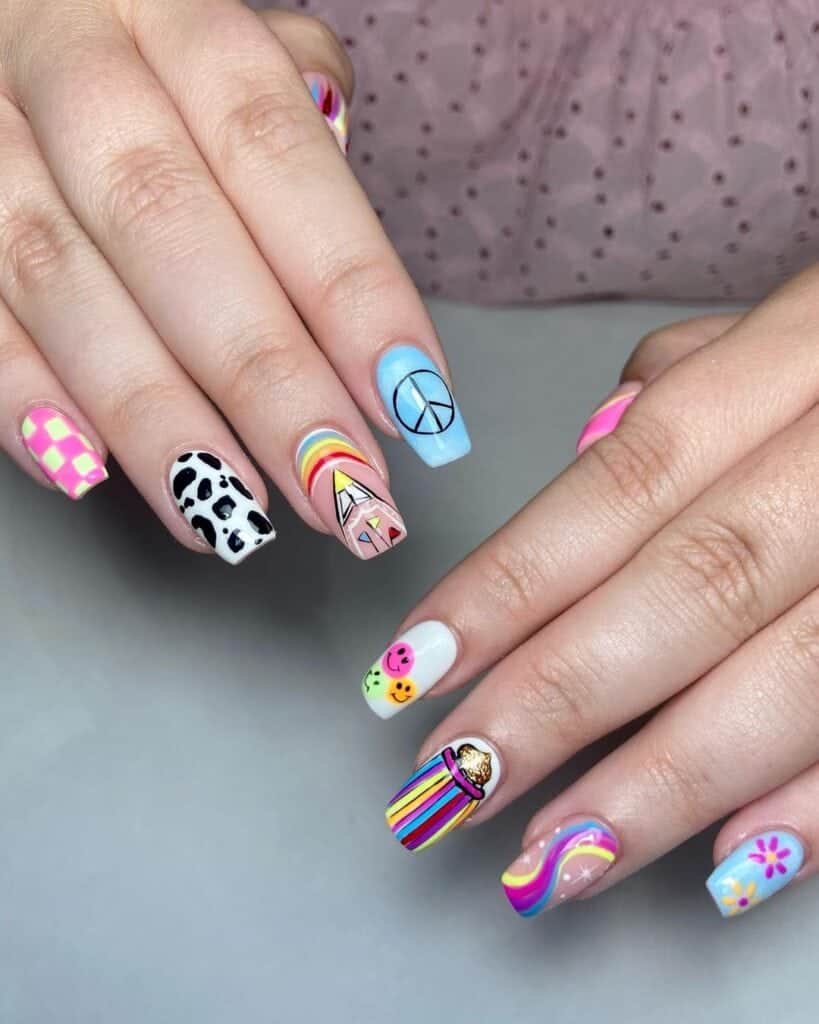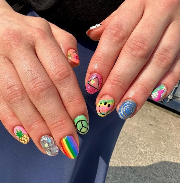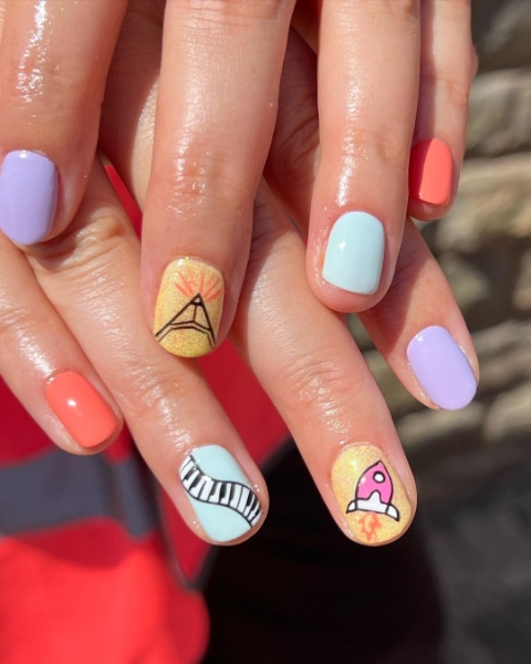 Make sure nails are as much a star of the show as music acts with our roundup of funky festival styles from pros on Instagram. From Glasto-themed nail art to mix ‘n’ match looks and disco designs, check out inspiration below…