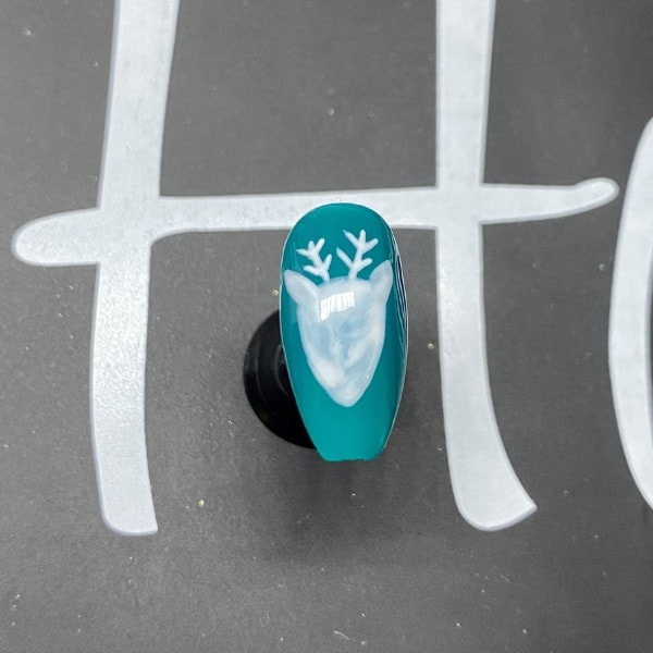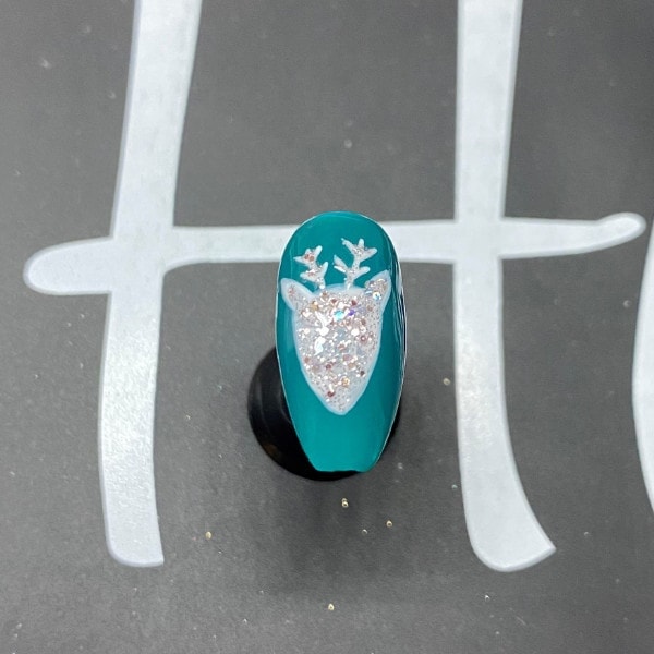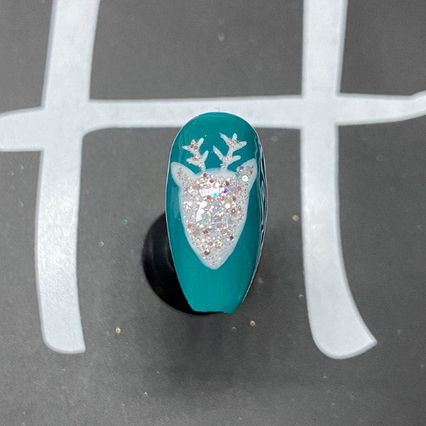 Paint Halo Gel Polish in Frosty over the French White reindeer, then cure for 30 seconds.