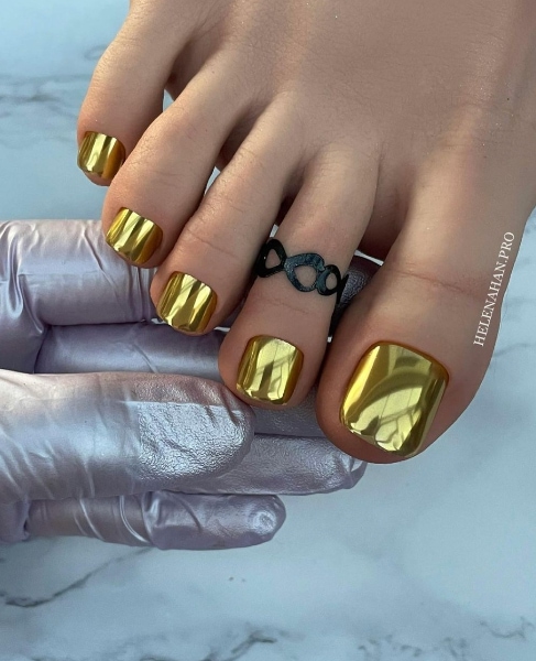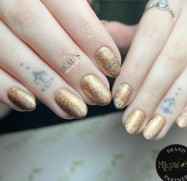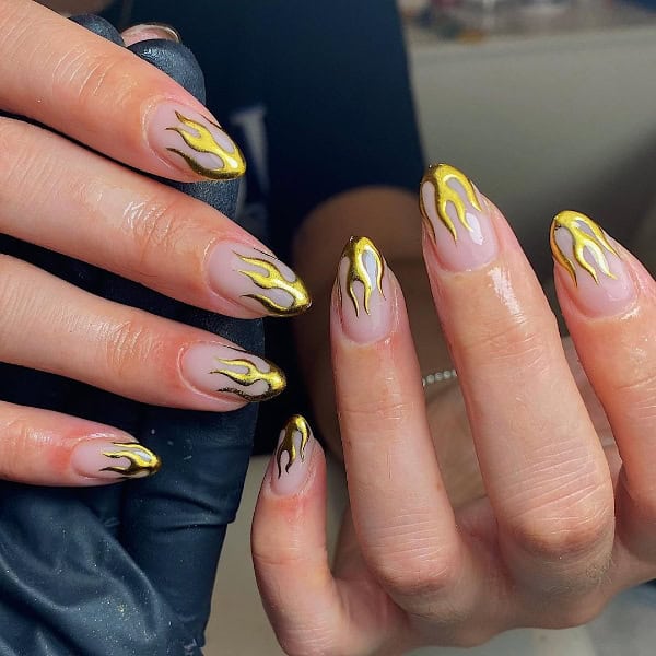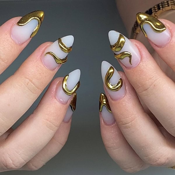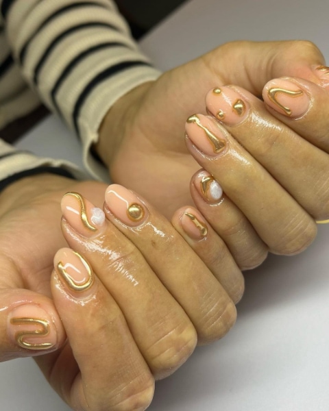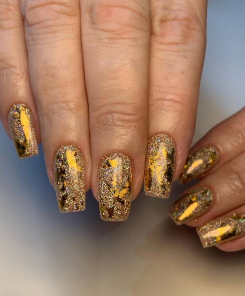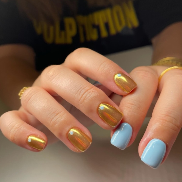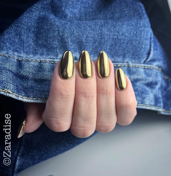 Embrace the gold rush in the nail world with glittering accents and metallic colour-block finishes, offering eye-catching, opulent effects. We’ve rounded up 40 glistening gold nail designs below…