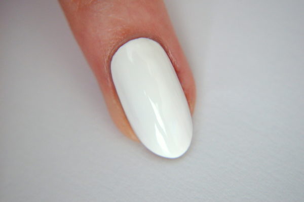 Prep nails and file to shape. Apply a base coat followed by a coat of a white polish. Wait for it to dry fully.