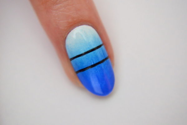 Using a sponge and a range of blue polishes create a gradient.