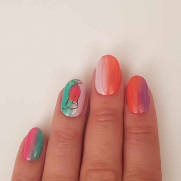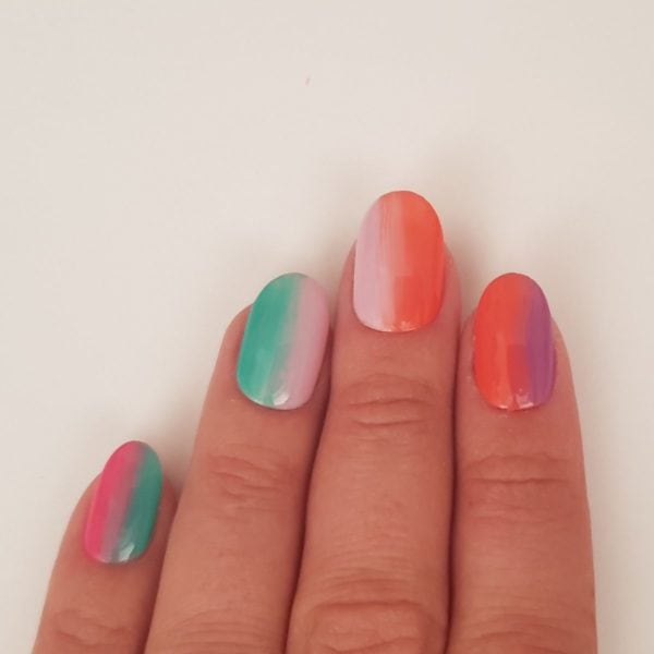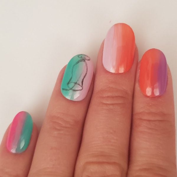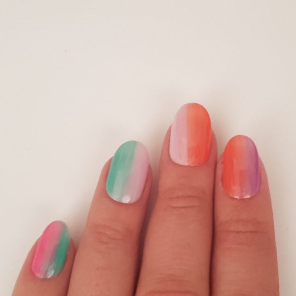 For the ring finger, using Gellux Gossip Girl down one side of the nail and then Gellux Girlfriends down the other half, again blending the colours in the middle.