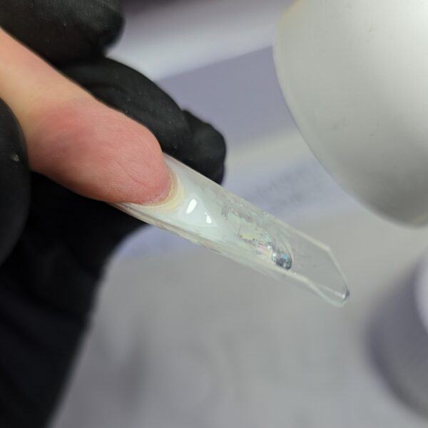 Turn the nail and check its underside. If there is too much product, remove it then cure the nail for 60 seconds.