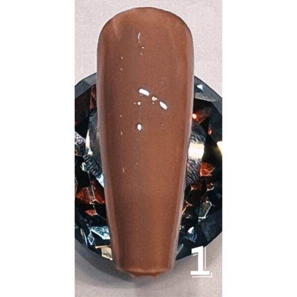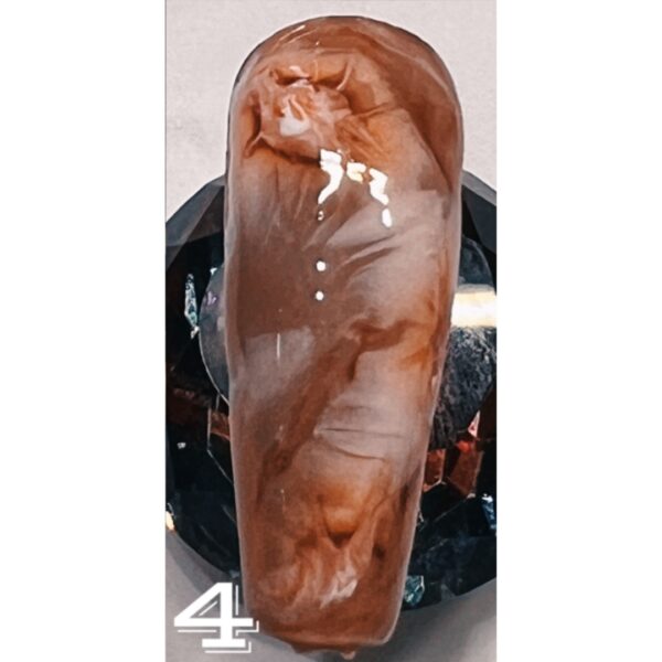 For the remaining nails, the nail artist used INK London iLac Gel Polish in i-270 (Sahara) as the base colour of the ombré nails, then applied iLac Gel Polish in i-220 (English Oak) towards the ends of the nails and smudges of Colour Gel Paint in Black Knight at the tips to create depth. The other nail showcases two layers of i-220 (English Oak), finished with INK London’s Ultimate No Wipe Top Coat.