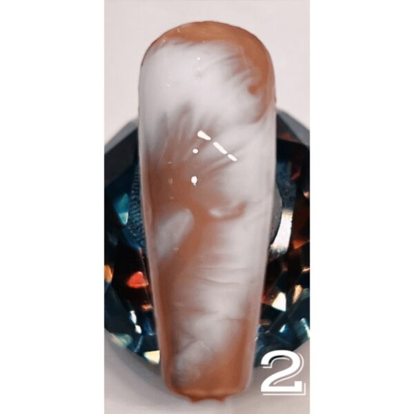 Apply blooming gel, making sure not to cure. Using the Super 6 side of the INK London Fantastic 4/Super 6 Gel Brush, apply INK London Colour Gel Paint in White Lines randomly across the nail. Allow the blooming gel to spread the colour, then cure.