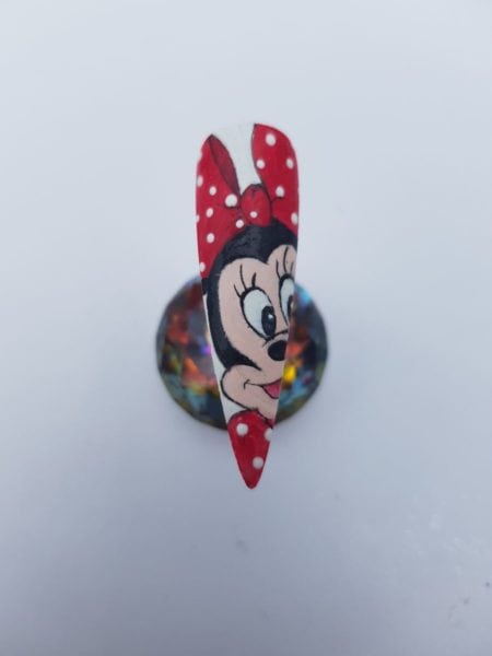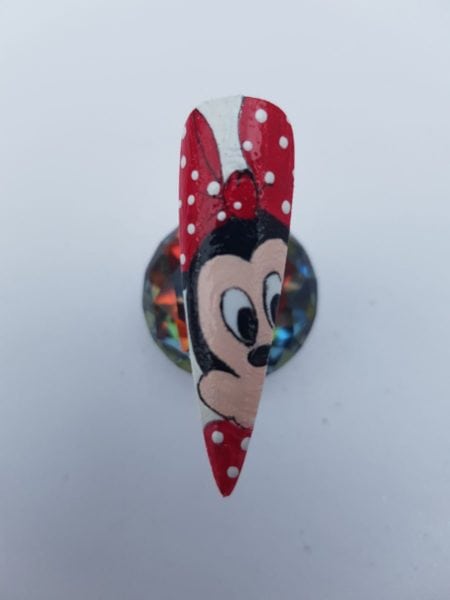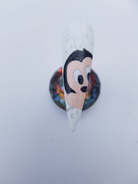 Paint the black parts of Minnie - the nose, eyes and outer part of the face. I used Artistic Colour Gloss in Swag. Flash cure, unless you are nervous you may disturb the polish, in which case cure for 30 seconds. Apply a second coat, if required, for depth of colour.