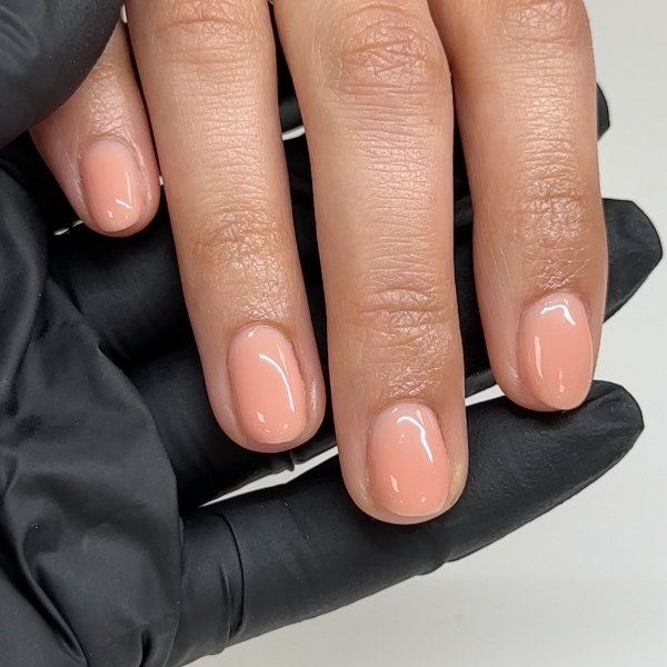 Glitterbels content creator, Stacey Machin, shows off how she perfects her application of Glitterbels Hema Free Builder-bel Gel, using a peachy nude shade, Honey Pot, from the range.