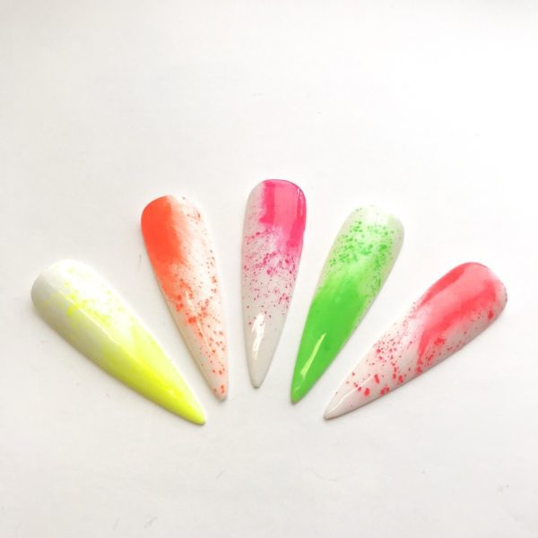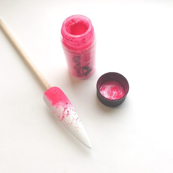 Using the Magpie Beauty Detailer Brush, apply the pigments to the tacky layer of the gel using a sweeping motion into the centre of the nail. Hold the brush above the nail and tap off any excess powder to get the sprayed effect.