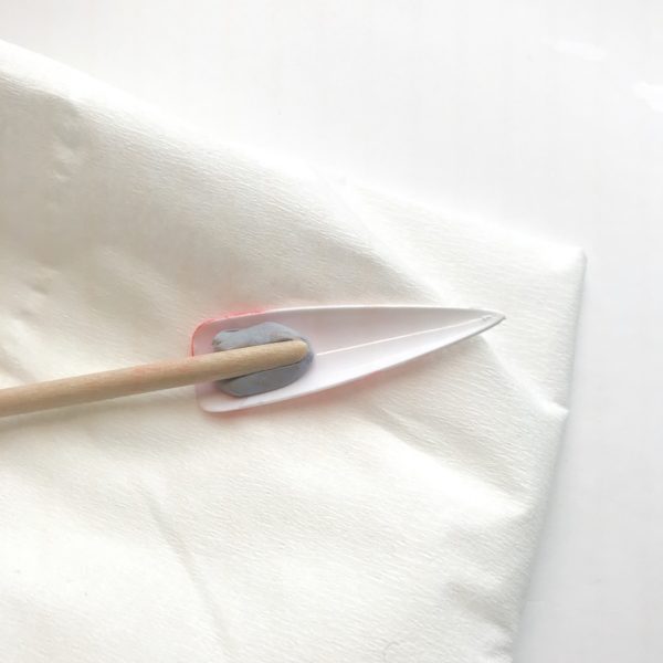 Gently but firmly press each nail into couch roll to set the sprayed dots in place. Gently brushing any excess off with the Magpie Beauty Detailer Brush.