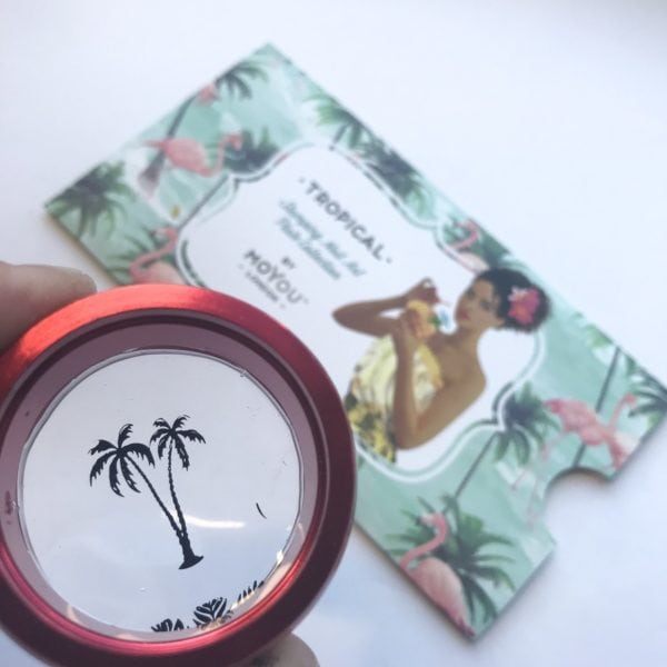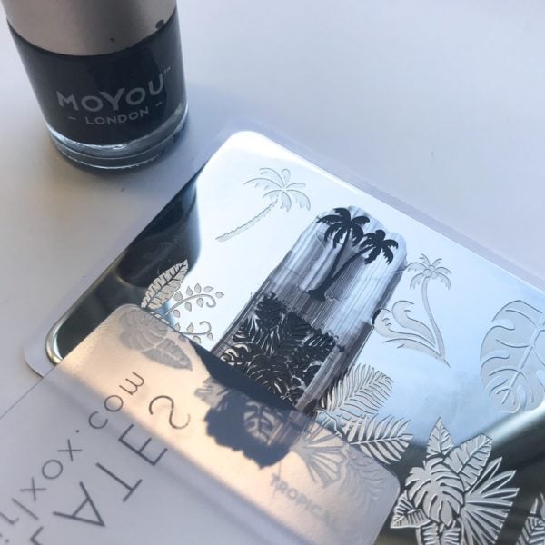 Using Mo You Black Knight apply the stamping polish to the chosen stamping plate. Scrape over.