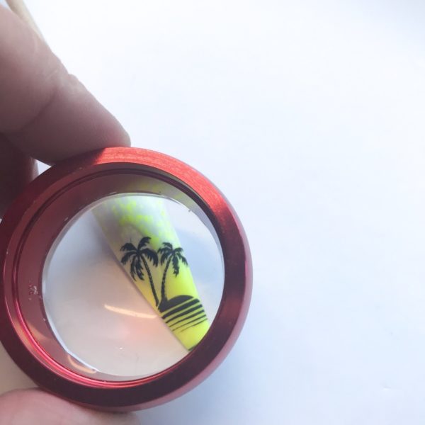 Use the clear viewfinder to perfect placement for the art on your nail.