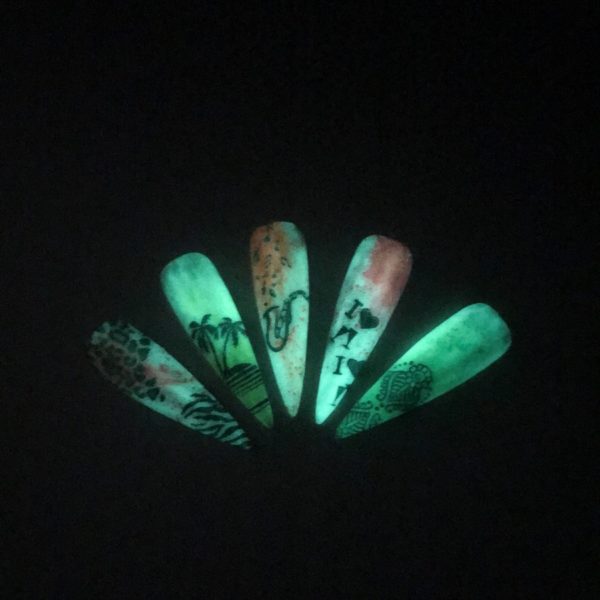 Apply a layer of Gelish Trends Glow In The Dark – perfect for after hours Ibiza parties! Glide over a coat of Gelish Top It Off, cleanse the nail and apply Gelish Nourish Cuticle Oil to finish.