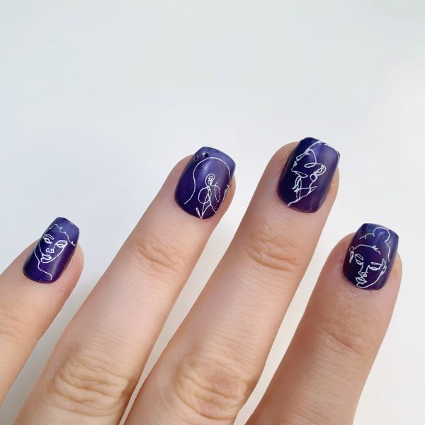 Norwich nail artist, Tabby Casto, has created a purple pierced design with female outlines to celebrate International Women’s Day, using Artistic Nail Design – available in the UK via Sweet Squared.