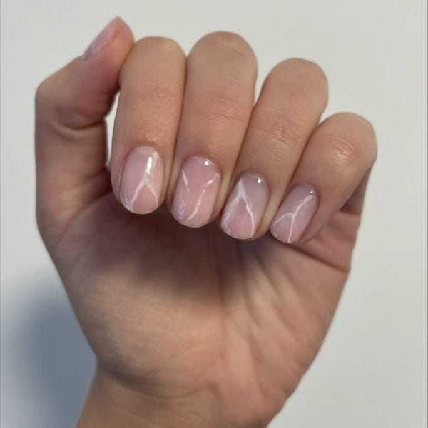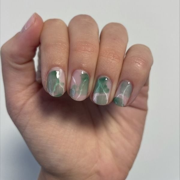 Mix GELLUX Rush Hour with a small amount of Clear Base & Top Coat, paint onto the nail randomly and cure.
