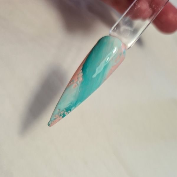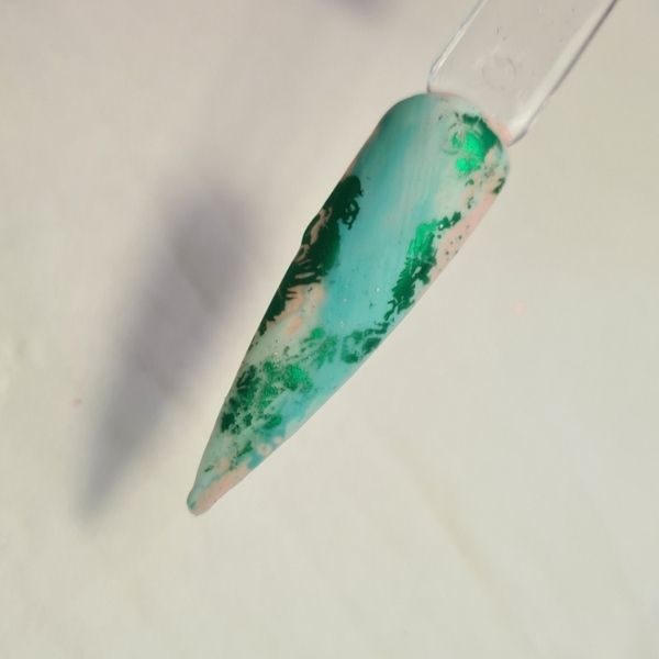 Take 2 shades of gel polish - I have used Mint Tint shades Carico Lake and Love Bug. Apply with a brush diagonally across the nail. Cure in lamp for 60 seconds.