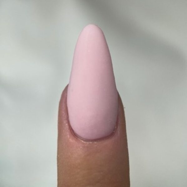 Apply Core Powder in Glass Slippers as a base, then go in with the Pom Pom Acrylic Powder. Use a final layer of Glass Slippers to cap and build the shape of the nails. File the acrylic to perfection by using an E-file to remove the bulk (or a 150-grit file if hand filing), and a 150-grit file to refine. Use the Square Buffer to help eliminate file lines.