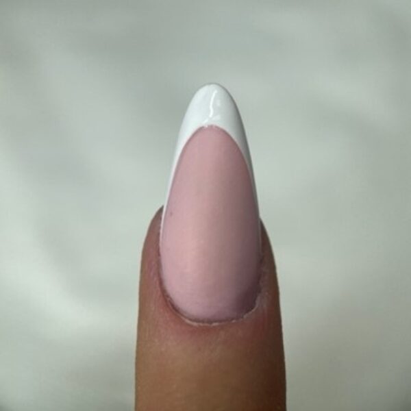 Using Unbelievabel Gel in White and a 20mm fine liner brush, create a French tip. Once you are happy with the application, cure.