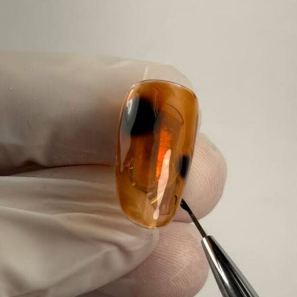 Apply another thin layer of amber jelly gel polish to deepen the look. For a richer tortoiseshell effect, apply two layers. Cure after each application.