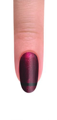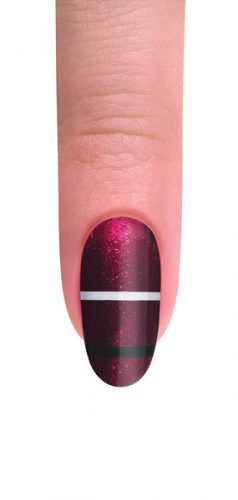 With a Mini Striper Brush and Black Shadow, create a horizontal line across the nail. Cure for 30 seconds and repeat for full coverage.