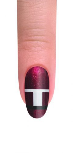 Using Just Tutu Much and the Mini Striper Brush, apply onto the diamond shapes. With Baby It’s Bold Outside and the Mini Striper Brush, apply on top of the center white line. Cure for 30 seconds.