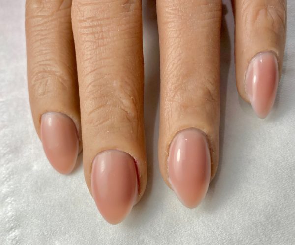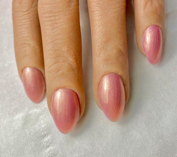 Apply one coat of Gellux in Rose Pearl and do not cure.