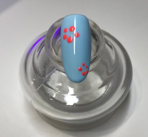 For the dotting detail, use Gelish Arctic Freeze and the Nail Harmony Marbling Tools. Place your first and largest dot in the middle, followed by smaller dots going across each of the legs getting smaller to add effect. Cure.