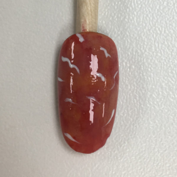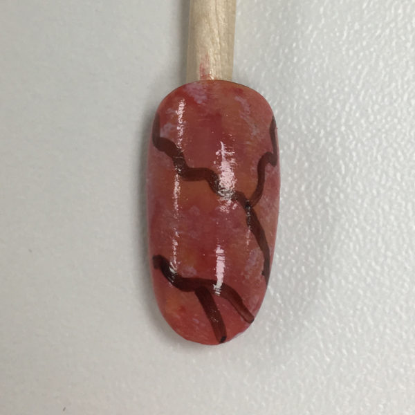 Draw some squiggly white lines in gel polish. Pat them until they blended in and cured.