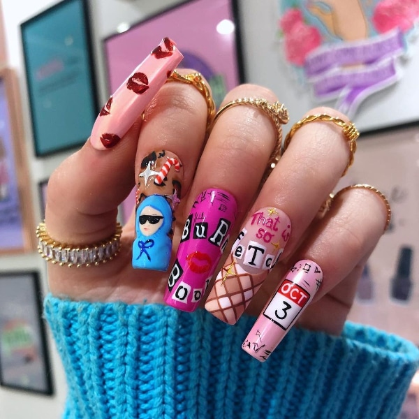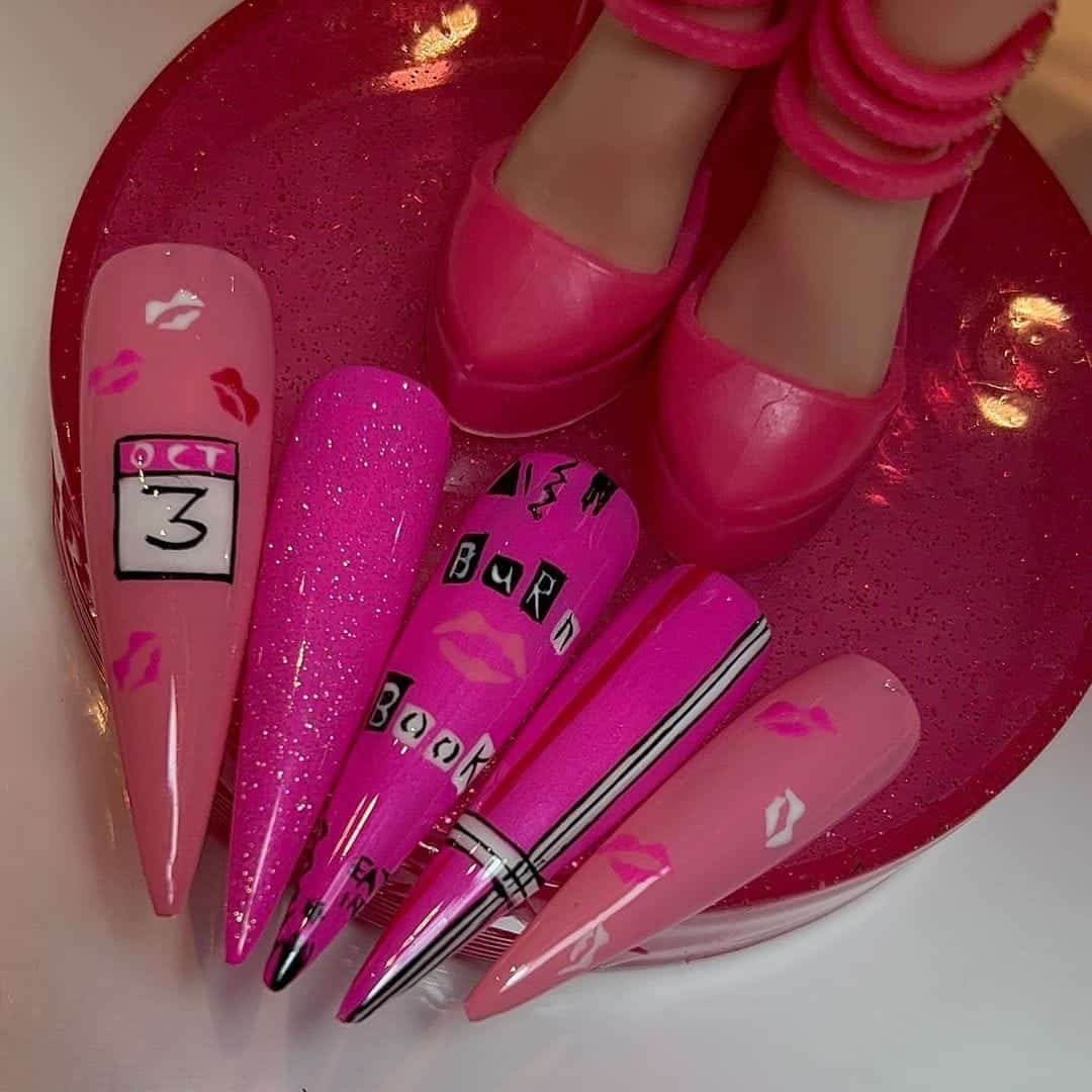 Don’t just limit pink to Wednesdays: take inspiration from our roundup of oh-so fetch nail designs inspired by iconic teen comedy film and musical, Mean Girls…