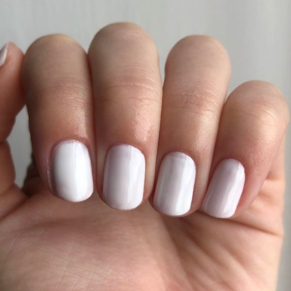 After prepping, paint one coat of GELLUX Purely White, and cure. The white acts as good base for the ombré and helps make the colours on top pop.