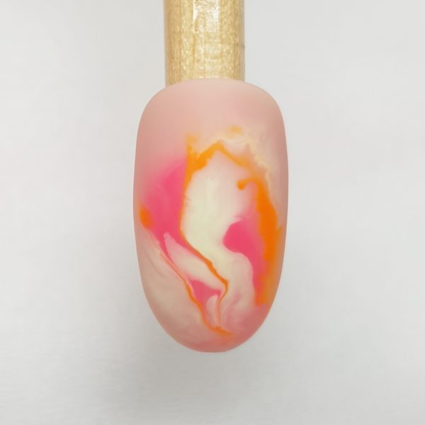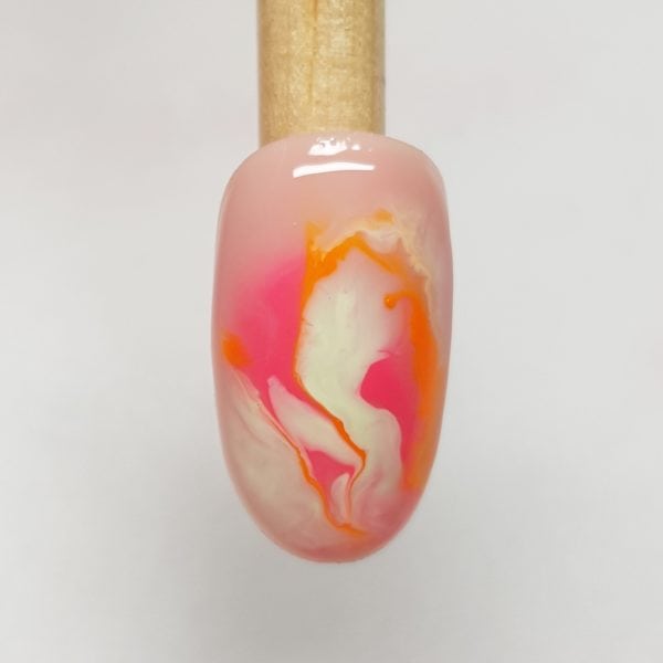 Apply a thin layer of CrystaLac WaterPro in Clear and don't cure. With any brush, apply CrystaLac in the shades 3S96, 3S129 and 3S106. Wait a couple of seconds while the product spreads. When you happy are with the look, cure for 1 minute.