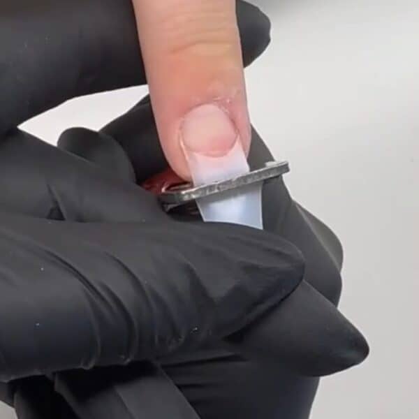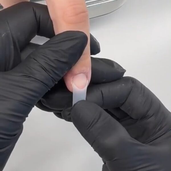 Select the correct sized tips for each nail. Ensure they reach the full width of the natural nail without overlapping the skin. If needed, file the sides slightly.