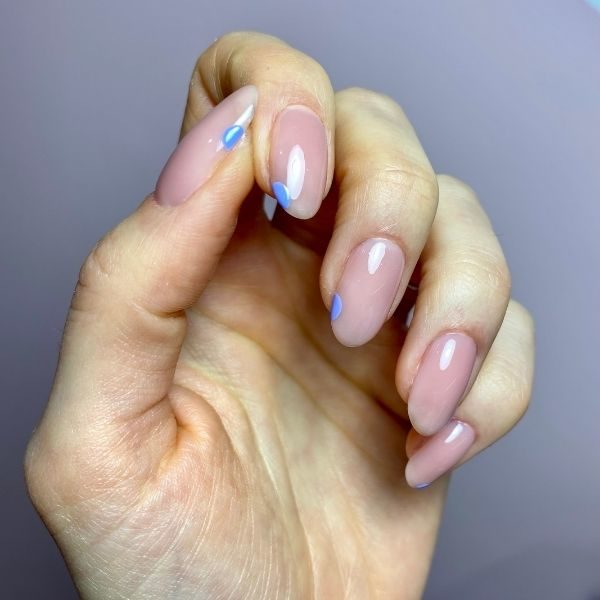 Using a fine liner nail art brush dipped into GELLUX Shout It Out, paint a small half-moon in the corner of each nail and cure for 30 seconds.
