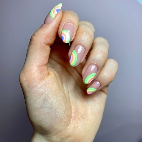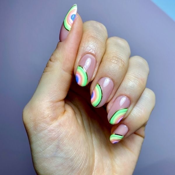 Brighten up your day with this rainbow nail design by Salon System nail expert, Julie-Anne Larivière.