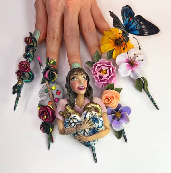 Nails must be sculpted and feature 3D elements and hand-painted nail art. Embellishments and pre-made products can be used, but make up no more than 25% of the design. For the video element, a short story should be shared about the nail design: what inspired it and how it was created.