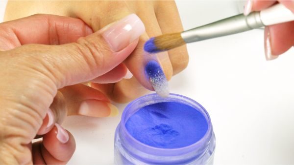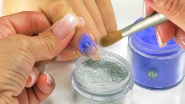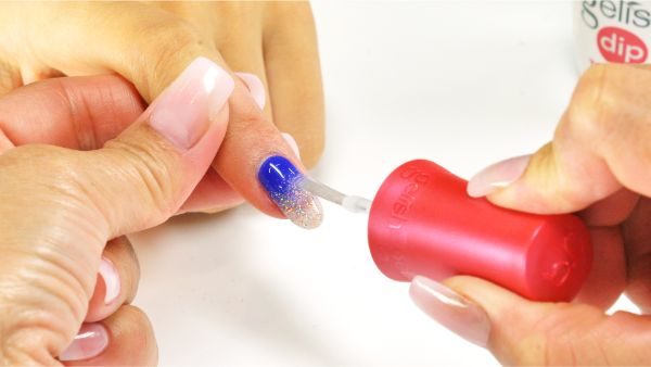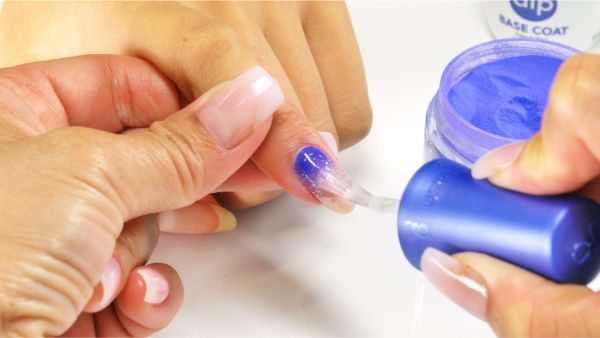 Brush off excess powder. Apply a second coat of Dip Base Coat.