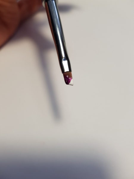 Start to paint two lines with your brush in almost a V shape. Cure.
