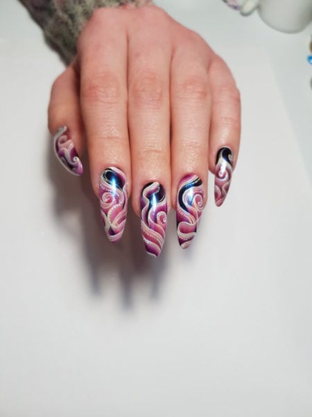 Continue to add more lines to your designs how you feel best, depending on the nail length and size. I’d also suggest moving your brush how feels best for you; this will help find your signature style.