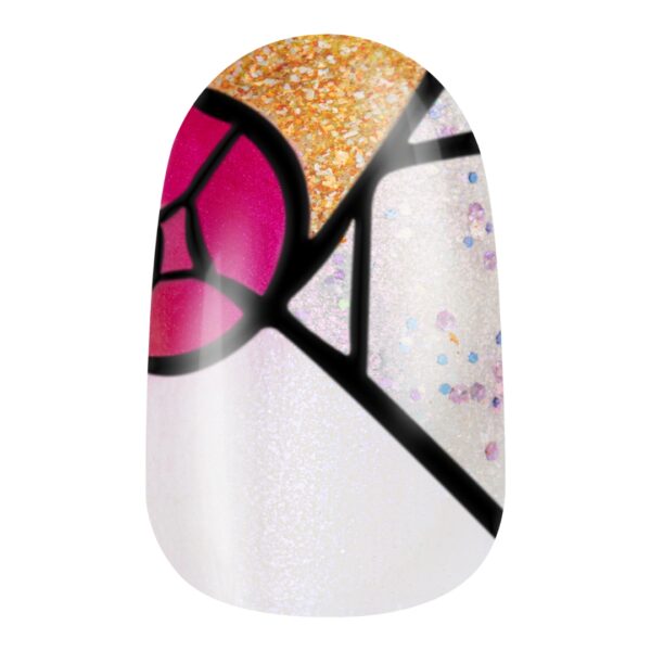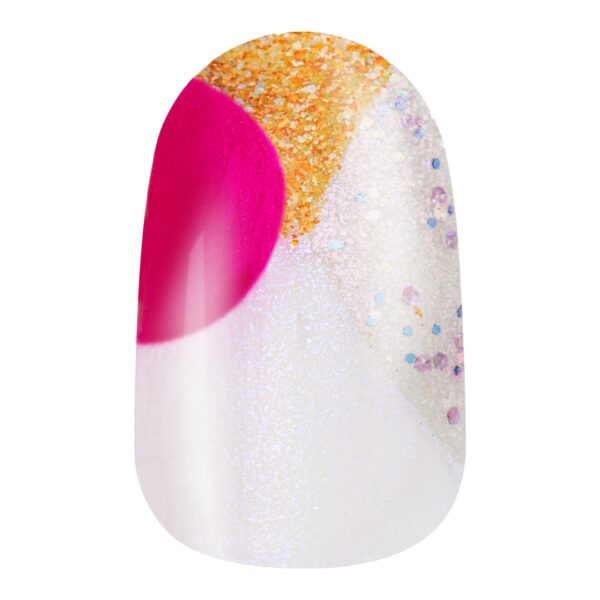With the detail brush and OPI Nail Lacquer in Five Golden Flings, apply a triangle of colour at the tip. Create an additional triangle with OPI Nail Lacquer in Put On Something Ice on the opposite side of the nail. Allow to dry.