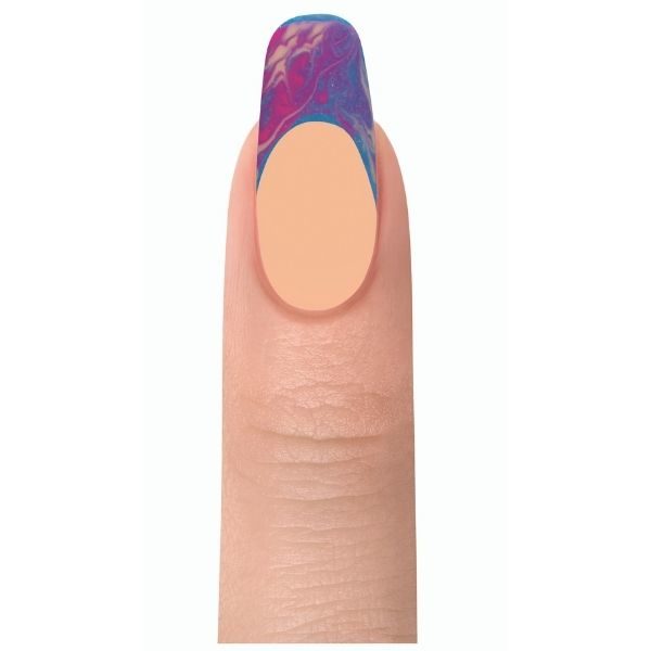 With a Mini Striper Brush, apply the shades It's My Moment and All Day, All Night and swirl the colours togethe over Keepin' It Cool. Cure for 30 seconds. Apply Top It Off to the entire nail, making sure to cap the free edge. Cure for 30 seconds. With Nail Surface Cleanse and Wipe It Off lint-free wipes, cleanse the inhibition layer of the nail. Finish your look by massaging Nourish Cuticle Oil into the skin surrounding the nail plate.