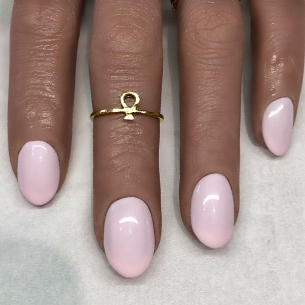 Prep the nails. File to shape and push back cuticles and buff nail plate. Cleanse nails with GELLUX Profile Prep + Wipe. Apply GELLUX Fast Bond to nails and let dry. Apply GELLUX Easy Off Base Coat and cure, then apply two layers of GELLUX Piggy Pink, curing after each layer.
