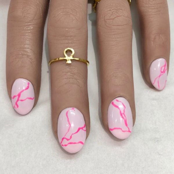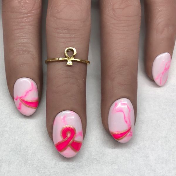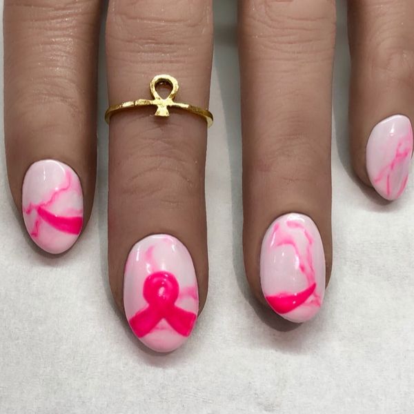 Show your support for Breast Cancer Awareness Month in October with a pink ribbon on nails.